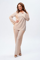 Застежка отсутствует. V-образный вырез горловины. Вдоль борта с двух сторон располагаются пуговицы, которые придают образу дополнительную элегантность и стройность.