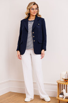Жакет классический полуприлегающего силуэта длиной ниже бедер. На подкладке.