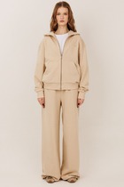 Брюки свободного силуэта прямые, с двумя верхними боковыми функциональными карманами. Высота сиденья классическая. Застежка центральная на молнию и петлю с пуговицей на поясе.