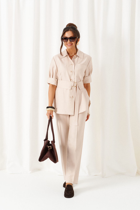различных интерпретациях: от оверсайза до классики. Выполнен из смесового полотна с содержанием натуральных волокон – льна и вискозы, предназначен для повседневного и выходного использования. Найдет применение в жаркую и прохладную летнюю погоду.