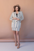 Комплект женский-двойка, из текстильной ткани, жакет удлиненный, полуприлегающего силуэта с центральной бортовой застежкой на пуговицы до линии перегиба лацкана. Спереди рельефные швы от плечевого шва, отрезной бочок и карман с клапаном. Спинка с рельефами от плечевого шва. Рукав втачной, двухшовный. Воротник пиджачного типа. Жакет на подкладке, длина по спинке 67 см, длина рукава 62 см. Брюки прямые,классические, с заутюженными стрелками,по переду обработаны карманы с отрезным бочком,застежка на тесьму-молнию и 1 пуговицу.На задних половинках обработаны вытачки и имитация карманов с листочкой, пояс в брюках притачной. Длина брюк от талии по боковому шву 100 см.