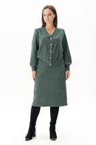 Комплект женский, 2-х предметный, состоит из жакета и и брюк. Жакет женский удлиненный, из текстильной ткани, на подкладке, полуприлегающего силуэта с центральной бортовой застежкой на пуговицы до линии перегиба лацкана. Спереди рельефные швы от плечевого шва, отрезной бочок и карман с клапаном. Спинка с рельефами от плечевого шва. Рукав втачной, двухшовный, по низу рукава обработана шлица на петли-пуговицы. Воротник пиджачного типа. Длина по спинке 66 см, длина рукава 62 см.Брюки прямые,классические, с заутюженными стрелками,по переду обработаны карманы с отрезным бочком,застежка на тесьму-молнию и 1 пуговицу.На задних половинках обработаны вытачки и имитация карманов с листочкой, пояс в брюках притачной. Длина брюк от талии по боковому шву 100 см.