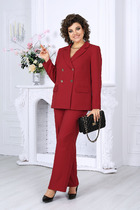 Комплект женский, 2-х предметный, из текстильной ткани, состоит из жакета и юбки. Жакет женский удлиненный, на подкладке, полуприлегающего силуэта с центральной бортовой застежкой на пуговицы до линии перегиба лацкана. Спереди рельефные швы от плечевого шва, отрезной бочок и карман с клапаном. Спинка с рельефами от плечевого шва. Рукав втачной, двухшовный, по низу рукава обработана шлица на петли-пуговицы. Воротник пиджачного типа. Длина по спинке 66 см, длина рукава 62 см. Юбка прямого силуэта, с фигурной кокеткой по переду и разрезом-шлицей. Заднее полотнище со средним швом, в котором обработана застежка потайная. Верх юбки обработан обтачками. Длина по боковому шву 64 см. Юбка на подкладке.