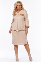 Костюм женский двухпредметный, состоит: рубашка +легинсы. Рубашка полуприлегающего силуэта, воротник рубашечный на стойке, застежка центрально-бортвая на петли и пуговицы, рукав втачной 3/4 с манжетом, в боковых швах разрезы, полочка украшена накладным карманом из экокожи. Легинсы прилегающего силуэтас высокой посадкой, пояс на резинке.
