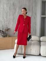 Элегантный женский костюм, состоит из юбки и жакета, выполнен из жаккардовой ткани с содержанием хлопка.