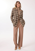 Стильный женский костюм, состоит из блузона и брюк. Костюм выполнен в спортивном стиле.
