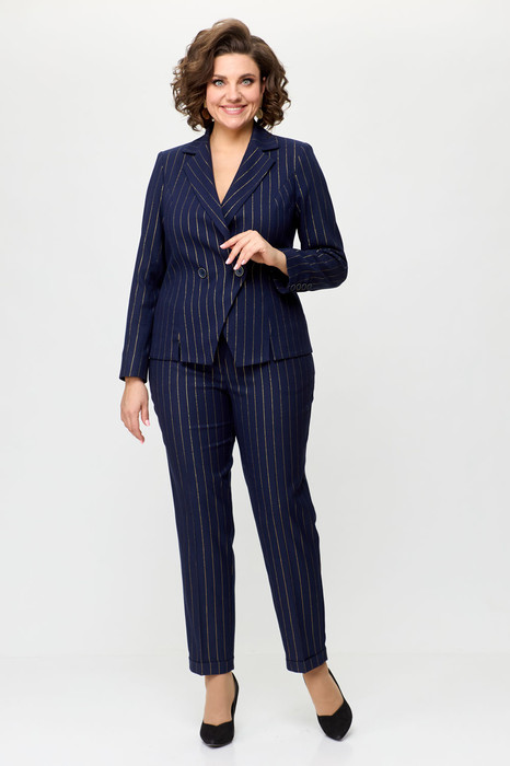 Элегантный женский костюм, выполнен из костюмной ткани в полоску. Полоска из люрексной нити!