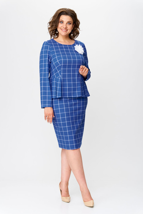 Элегантный женский костюм выполнен из ткани в  клетку.