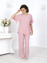 Комплект брючный( кофта+брюки). Кофта прямого силуэта с притачным манжетом из отделочной ткани. Рукав покроя реглан с притачным манжетом по низу. Капюшон. В качестве отделки используется вышивка на центральной части переда. Брюки прямые. Верхний срез обработан поясом с резинкой. В боковых швах обработаны карманы. На передних половинках застрочены стрелки.