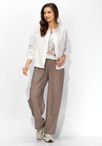 Костюм Magia mody 2623 серо-бежевый в бирюзовую полоску
