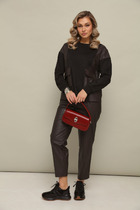 Брюки - палаццо с центрально застежкой на тесьму молнию с гульфиком и откоском; с притачным поясом со шлевками, застегивающимся на 1 прорезную петлю и пуговицу. Задняя часть пояса - на резинке. ПП брюк со складками, переходящими в стрелки и боковыми карманами. ЗП брюк с 2-мя парами таллиевых вытачек и стрелками.