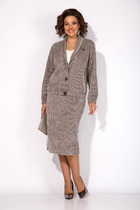 Жакет полуприлегающего силуэта, длиной ниже линии бедер. Спинка с вертикальными рельефами. Перед с центрально-бортовой застежкой на 2 петли-пуговицы и воротником пиджачного типа, вертикальными рельефами, доходящими до линии кармана в рамку с клапаном. Рукава втачные двухшовные. Жакет на подкладке.