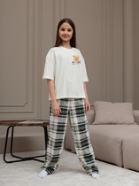 Костюм для девочки из трикотажного полотна "кулирка" в комбинации двух видов: гладкокрашеного и набивного с тематическим рисунком, состоящий из футболки и шорт. Футболка из гладкокрашеного полотна, с цельнокроенными короткими рукавами, горловиной овальной формы, обработанной втачной планкой и отделочной строчкой. В центре переда - принт, выполненгный в технике шелкографии. Шорты из полотна с набивным рисунком, свободного силуэта, на цельнокроенном поясе с эластичной тесьмой внутри.