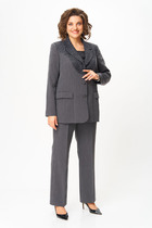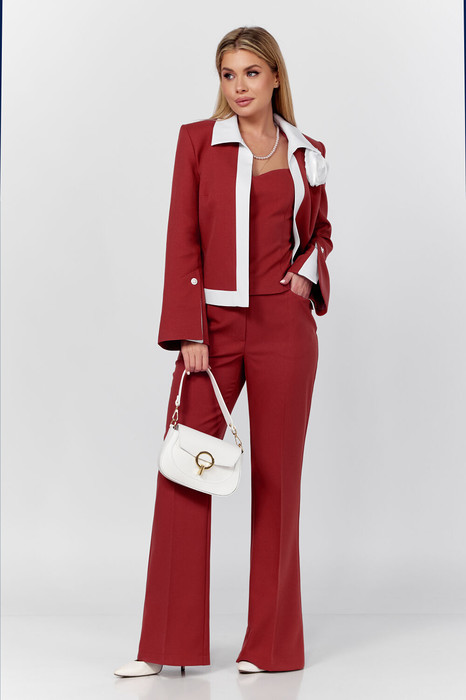 Настоящее произведение искусства!!! Уверенность, элегантность, этого костюма делает его идеальным выбором для важных деловых встреч, корпоративных мероприятий и незабываемых вечерних выходов. Изысканный комплект тройка выполнен из качественной стрейчевой ткани. Топ облегающего силуэта с рельефами по полочке, по спинке выточки и потайная молния в среднем шве. Брюки клёш от колена с за утюженым кантом, которые подчеркнут вашу утонченность и изысканность. Застежка молния по переду, по бокам прорезные карманы, пояс со шлевками и эластичной лентой по бокам. Жакет "BLAZER" без застежки на подкладке, рукав втачной расширенный к низу с декоративной шлицей. Изящность комплекту придает контрастная отделка воротника, планок, разреза шлицы и съемного декоративного цветка ручной работы подчеркнет вашу неотразимость и безупречный вкус.