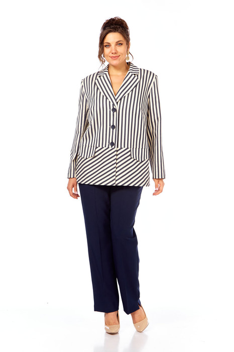 Комплект женский брючный 2-х предметный.Стильный классический жакет, прекрасный вариант на каждый день. Модель прямого силуэта с центральной бортовой застежкой на петли-пуговицы и с фигурным клапаном. Низ изделия обработан отрезной деталью, где полоска оформлена по диагонали. Спинка со средним швом. Рукав втачной, полной длины. Жакет частично на подкладке (полочки и спинка).Брюки классические, слегка зауженные к низу, на притачном поясе, застежка на тесьму-молнию и одну петлю, пуговицу