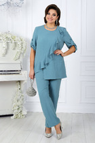 Комплект женский брючный 2-х предметный. Праздничная элегантная блузка полуприлегающего силуэта, выглядит эффектно, прекрасно подойдет для мероприятий. Горловина аккуратной округлой формы. Рукав втачной, свободный с фантазийным решение, длина 7/8. Декоративным элементом является съемная дизайнерская брошь. Средний шов спинки вверху переходит в застежку на 6 навесных петель, пуговиц. В боковых швах предусмотрены разрезы. Брюки классические с заутюженными стрелками, слегка зауженные к низу, оформлены притачным поясом, частично на резинке. Застежка спереди брюк на молнию и петлю-пуговицу