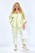 Костюм свободного прилегания выполнен из мягкой немнущейся ткани. Блузон с капюшоном и цельнокроеным рукавом по низу которого кулиса с завязками. По полочки блузона выполнен карманы "рамки", низ блузона затягивается на кулису. Брюки- шаровары на притачном поясе с резинкой, по боковым брюк карманы. низ брюк на кулисе. Декорированы брюки густой дизайнерской вышивкой "кошка" Длина брюк 100 см. длина блузона-62 см.