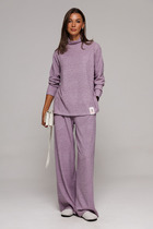 Костюм женский спортивный выполнен из трикотажного полотна, состоит из худи и брюк. Худи свободного кроя, средней длины(до середины бедра). Полочка и спинка худи разрезные. Горловина обработана - капюшоном. Рукав втачной длинный с манжетой по низу. Брюки Карго прямые от бедра, с завышенной посадкой на притачном поясе с резинкой. В боковых швах брюк имеются функциональные карманы.