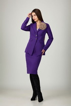 Жилет удлиненный двубортный с отложным (английским ) воротником. По полочке жилета расположены карманы и декоративные складки-защипы. Низ изделия обработан планкой-поясом и дополнен съемным поясом. застежка- кнопки.