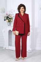 Костюм классический офисный состоит из жилета и брюк. Жилет приталенный классической формы. укороченный, по полочке жилета расположены рельефы и прорезные карманы с клапаном, воротник отложной с лацканами. Спинка жилета с талиевыми выточками. Жилет с подкладом. Брюки средней посадки, классического кроя на притачном поясе с резинкой. В боковых швах имеются карманы, застежка молния на гульфике.