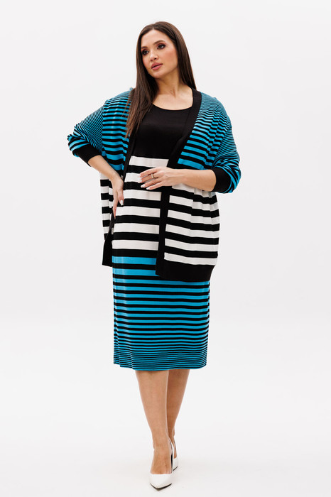 Трикотажный комплект - это модное решение для гардероба в стиле кежуал. Вместо классического тандема с юбкой, выбираем более расслабленный с платьем и кардиганом, плюс оригинальная многоцветная полоска, и не скучный современный "look" готов.