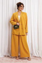 Костюм состоит из свободной лёгкой куртки на разъёмной тесьме -молнии и прямых брюк.