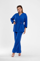Такой вариант неформального костюма можно отметить отдельно-это настоящий шик, который в любой обстановке смотрится по-особенному. Невероятное ощущение расслабленности и комфорта обеспечивает удобный покрой и тактильно уютный трикотаж с эффектом вельвета. Брюки свободного кроя, прямые, с наклонными боковыми карманами , на эластичном поясе с люверсами и отделочным шнуром. Джемпер рубашечного покроя,  свободный, слегка укороченный. Горловина круглая с притачной обтачкой. Рукав рубашечный расширенный к низу.