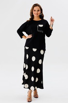 Верх: асимметричный джемпер с контрастным белым воротником и вставками, создающий эффект многослойности. Декоративный карман добавляет акцента.