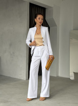 Лёгкий и элегантный брючный комплект в нежном голубом оттенке — идеальный выбор для тёплого сезона. Современный крой и натуральные фактуры создают гармоничный образ, сочетающий комфорт и утончённый стиль.