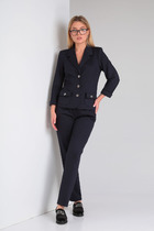 Комплект двойка "Медея". Туника женская, прямого силуэта. Выполнена из хлопковой ткани. Рукав втачной, длинный, по низу притачная манжета с застежкой на пуговицы. Длина рукава регулируется патой. Фигурный вырез горловины, оформленный отрезными планками. Застежка на пуговицах. Воротник стойка. По переду выполнены фигурные карманы с небольшой сборкой по верхнему краю. По линии талии подрез с небольшой сборкой. На спине изделия прямая кокетка, посередине бактовая складка. Низ изделия фигурный, по боковым швам выполнены разрезы. Джинсы - брюки, зауженные к низу, с застежкой на молнию и пуговицы, в боковом шве - карман, по спинке пояса - резинка. Брюки со стандартной посадкой (средней).