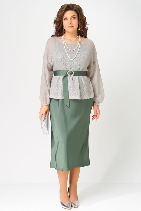 ""Эдита"" — элегантный образ для волшебной ночи. Сатиновое платье струится мягким блеском, а трикотажная накидка из махера с шерстью добавляет тепла и фактурности. Идеальный наряд для встречи Нового года и других торжеств, когда хочется сиять и чувствовать себя особенно.
