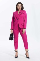 Джемпер данного комплекта прямого силуэта со спущенными рукавом, с планкой по горловине и подрезом ниже линия талии, выполненным  из отделочной ткани. Декором данного джемпера служит дизайнерская вышивка