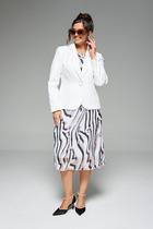 Костюм состоит из джемпера и брюк. Джемпер приталенного силуэта с воротником поло из трикотажного полотна. Рукав втачной одношовный. Брюки палаццо с притачным поясом из мягкой вельветовой ткани. Спереди застежка гульфик на молнии и петлей и пуговицей по поясу. По задней частям брюк вытачки. Пояс с резинкой в боковых частях. Брюки с заутюженными стрелками. Длина брюк с учетом пояса - 109 см. Длина джемпера - 57 см, длина рукава - 60 см.