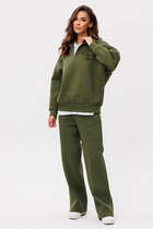 " Этот спортивный костюм от GOwear отлично подойдет для дома, прогулок, путешествий и отдыха. Сделан из теплой, комфортной ткани. Состоит из джемпера и брюк. Джемпер имеет  двойной капюшон и короткую застежку - молнию черного контрастного цвета по центру переда. На переде с левой стороны выполнена вышивка в цвет ткани. Джемпер имеет прямой силуэт. Низ джемпера и манжеты выполнены из кашкорсе.  Брюки зауженные к низу с притачным поясом (резинка и шнурок внутри). Брюки с боковыми карманами. По низу брюк – манжеты.
