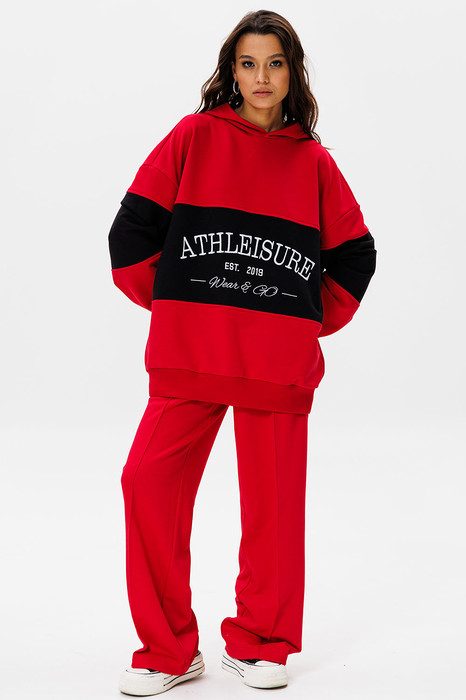 Стильный костюм с с оверсайз худи с контрастной вставкой и вышивкой Athleisure станет любимым в гардеробе. Athleisure - расслабленный и непринужденный стиль, основанный по большей части на спортивных базовых вещах. По сути, это даже не стиль, а способ носить базовые спортивные вещи.