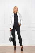Для очаровательного образа не хватает воротничка! Воротник — маленькая деталь, которая «смягчает» и делает нежным весь аутфит. Брюки со стрелками добавят образу строгости и деловитости, что позволит носить костюм как на прогулки, так и в офис.