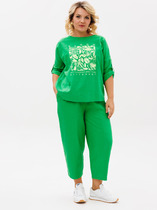 Женский яркий, повседневный костюм, состоящий из оверсайз свитшота с контрастной вышивкой и брюк со стрелками. Это находка для тех, кто ценит свободу, стиль и не хочет отказывать себе в комфорте 24/7.