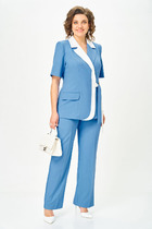 Блузка с втачным воротником с отрезной стойкой, центральной застежкой на петли и пуговицыпо отрезной планке. Плечо спущенное, рукав втачной, короткий. Шорты прямые, с отрезным поясом, пояс присборен на резинку.