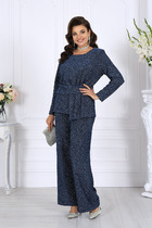 Блузка, без воротника, с круглым вырезом горловины, застежкой на потайную молнию в среднем шве спинки. По переду с нагрудными вытачками. По спинке со средним швом. Рукава с отрезной манжетой, присборенной на резинку. Плечо спущенное. Юбка, с отрезным поясом, застежкой на потайную молнию в левом боковом шве. Юбка плиссированная со складками гофре. Комплект со съемным поясом.