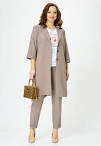 Жилет с центральной застежкой на петли и пуговицы, без воротника с круглым вырезом горловины. По переду с рельефами, выходящими из проймы, прорезными карманами с листочками, расположенными на уровне линии бедер. По спинке со средним швом ,рельефами, выходящими из проймы. Юбка без пояса, верхний срез обработан обтачками. Заднее полотнище со средним швом, заканчивающимся шлицей.