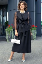 Жакет двубортный, приталенного силуэта. Вырез горловины V-образный, рукав спущенный, баллон на резинке по низу. По переду и спинке выполнены рельефы. Изделие на подкладке, с застежкой на петли и пуговицы по переду. Декором являются вышитые пайетки на ткани.