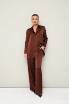 Женский костюм, состоящий из джемпера и юбки, выполнен из мягкого трикотажа, который держит форму. Джемпер свободного силуэта с цельнокроенными рукавами и застежкой-молнией по спинке. Джемпер дополнен дизайнерской вышивкой по переду и спинке. Классическая юбка-карандаш на трикотажной подкладке с завышенной линией талии, на обтачке, застегивается на молнию и имеет сзади шлицу.