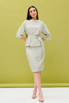 Костюм. Рубашка лен полуприлегающего силуэта с втачными рукавами, удлиненная по спинке. Обработка низа рубашки в форме овала. Шорты лен свободного кроя. Карманы в боковых швах.