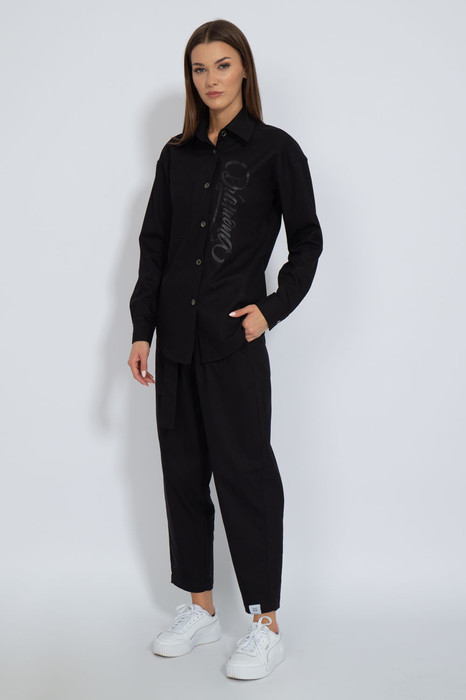 Костюм.Рубашка приталенного силуэта, сочетает в себе офисную строгость и свободный спортивный стиль. Джоггеры 4101. Ткань Тиффани одна из лучших джинсовых тканей по своим характеристикам. Плотность джинса и нежность велюра обеспечивают невероятный комфорт.