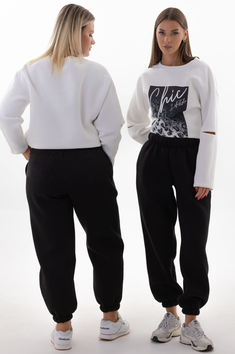 Представляем вам уникальный спортивный костюм, который сочетает в себе стиль и комфорт. Брюки свободного силуэта с  создают динамичный и современный образ, обеспечивая при этом максимальную свободу движений. Свитшот свободного силуэта с разрезами на рукавах добавляет оригинальности и позволяет вам выделиться из толпы.