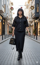 Представляем костюм состоящий из блузы и брюк.  Блуза свободного кроя, которая идеально сочетает в себе элегантность и комфорт. Брюки свободного кроя “Urban Elegance” – идеальное сочетание офисной строгости и свободного спортивного стиля. Этот костюм изготовлен из высококачественной костюмной ткани, что обеспечивает ему долговечность и элегантный внешний вид.