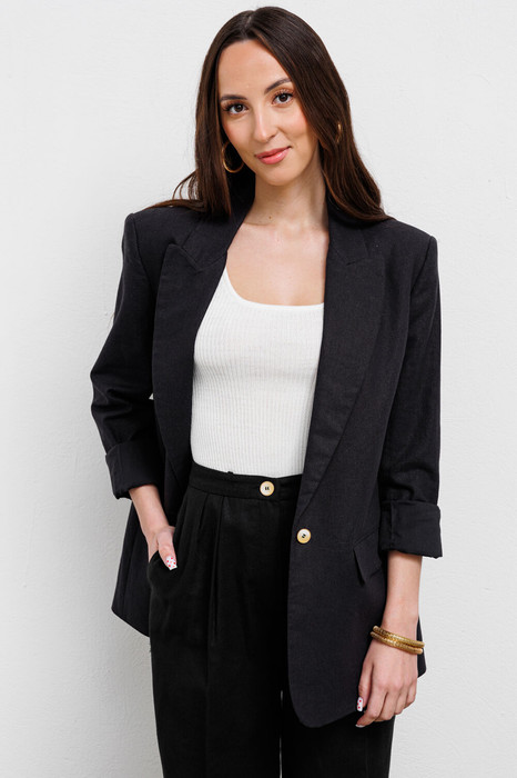 Классический льняной комплект состоящий из жакета и брюк. Жакет выполнен из льняной ткани на хлопковой подкладке, что позволит вашей коже дышать в летний период. Жакет прямого кроя, с подплечиками. Застежка центральная на 1 пуговицу. По переду расположены карманы с клапанами. Рукав двухшовный, что делает его очень удобным в носке, по низу рукава расположена шлица. По спинке расположена модная высокая шлица длиной 29 см. Длина жакета - 69 см. Брюки со складками на узком поясе, подходят всем без исключения, они удобно сидят и скрывают объем в бедрах.Модель наделена важной особенностью – высокой линией талии, что визуально удлинит ваши ноги. Застежка по переду на брючную молнию и пуговицу. В брюках имеются карманы с наклонным входом. Длина изделия 94 см.