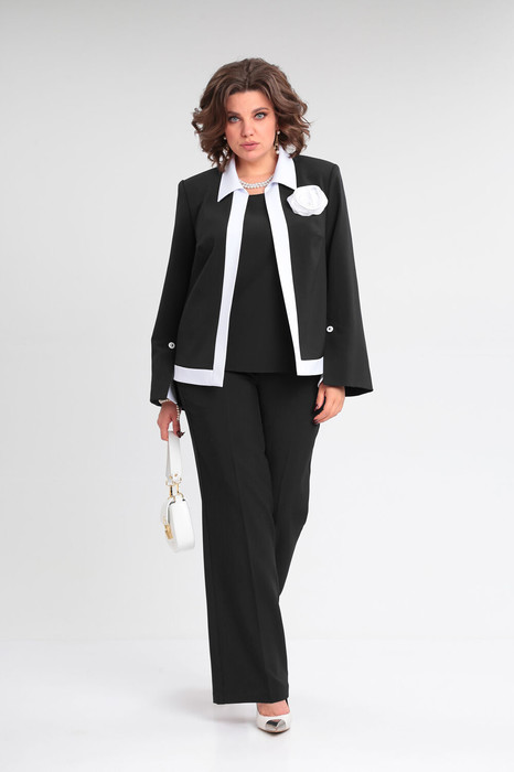 Настоящее произведение искусства!!! Уверенность, элегантность, этого костюма делает его идеальным выбором для важных деловых встреч, корпоративных мероприятий и незабываемых вечерних выходов. Изысканный комплект тройка выполнен из качественной стрейчевой ткани. Топ полуприлегающего силуэта с нагрудными вытачками по полочке и небольшим рукавом. Классические Брюки прямого силуэта на притачном поясе с эластичными лентами по бокам пояса. Средней посадки. С боковыми карманами Застежка молния спереди. Жакет "BLAZER" без застежки на подкладке, рукав втачной расширенный к низу с декоративной шлицей. Изящность комплекту придает контрастная отделка воротника, планок, разреза шлицы и съемного декоративного цветка ручной работы подчеркнет вашу неотразимость и безупречный вкус. Создайте свой уникальный стильный лук и будьте в тренде в одежде от LADY SECRET!