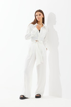 Стильный комплект, состоящий из свободной рубашки и брюк современного актуального кроя.