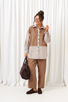 Стильный комплект, состоящий из блузы рубашечного силуэта и свободных брюк.